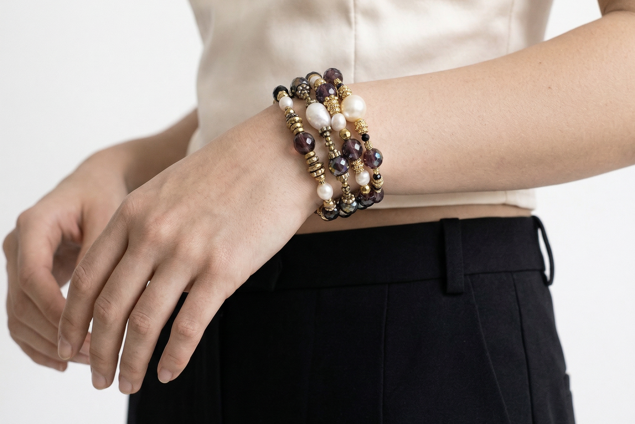 Chaque bracelet porte sa perle véritable. Unique, comme vous.